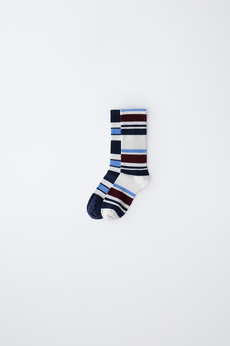 ZARA НАБОР ИЗ ДВУХ ПАР ВЫСОКИХ НОСКОВ В ПОЛОСКУ, СИНИЙ/БЕЛЫЙ