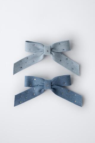 Набор из 2 заколок для волос с бантом и аппликацией из страз.