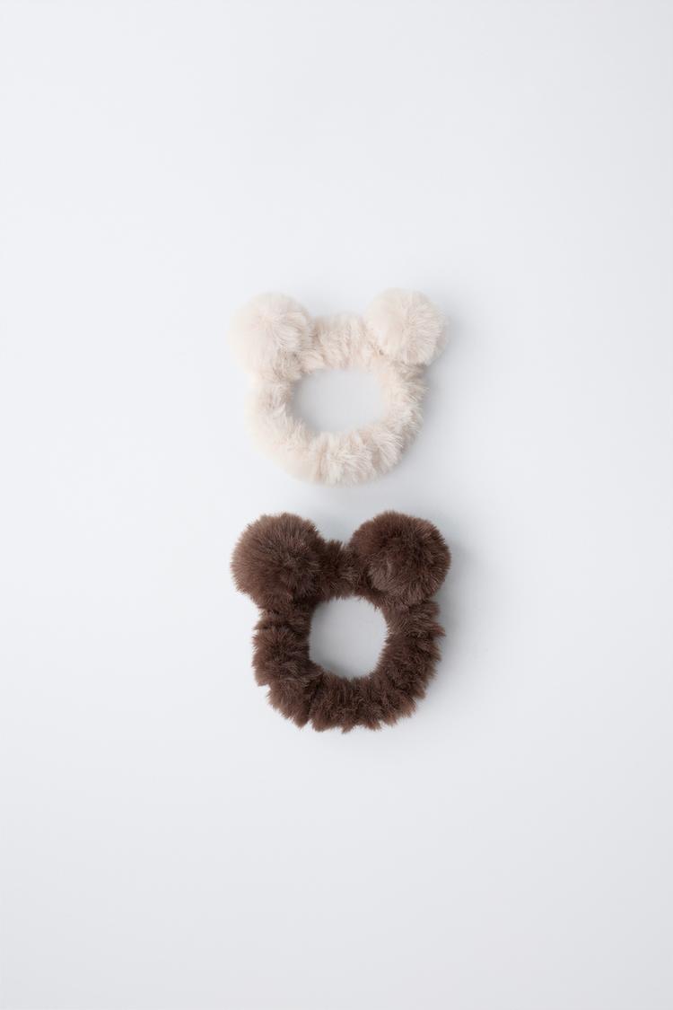 ZARA НАБОР ИЗ ДВУХ РЕЗИНОК ДЛЯ ВОЛОС «УШКИ» С ЭФФЕКТОМ МЕХА, ЭКРЮ