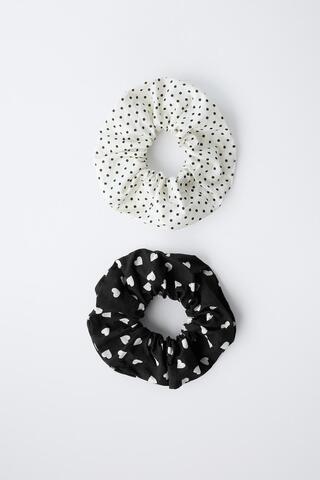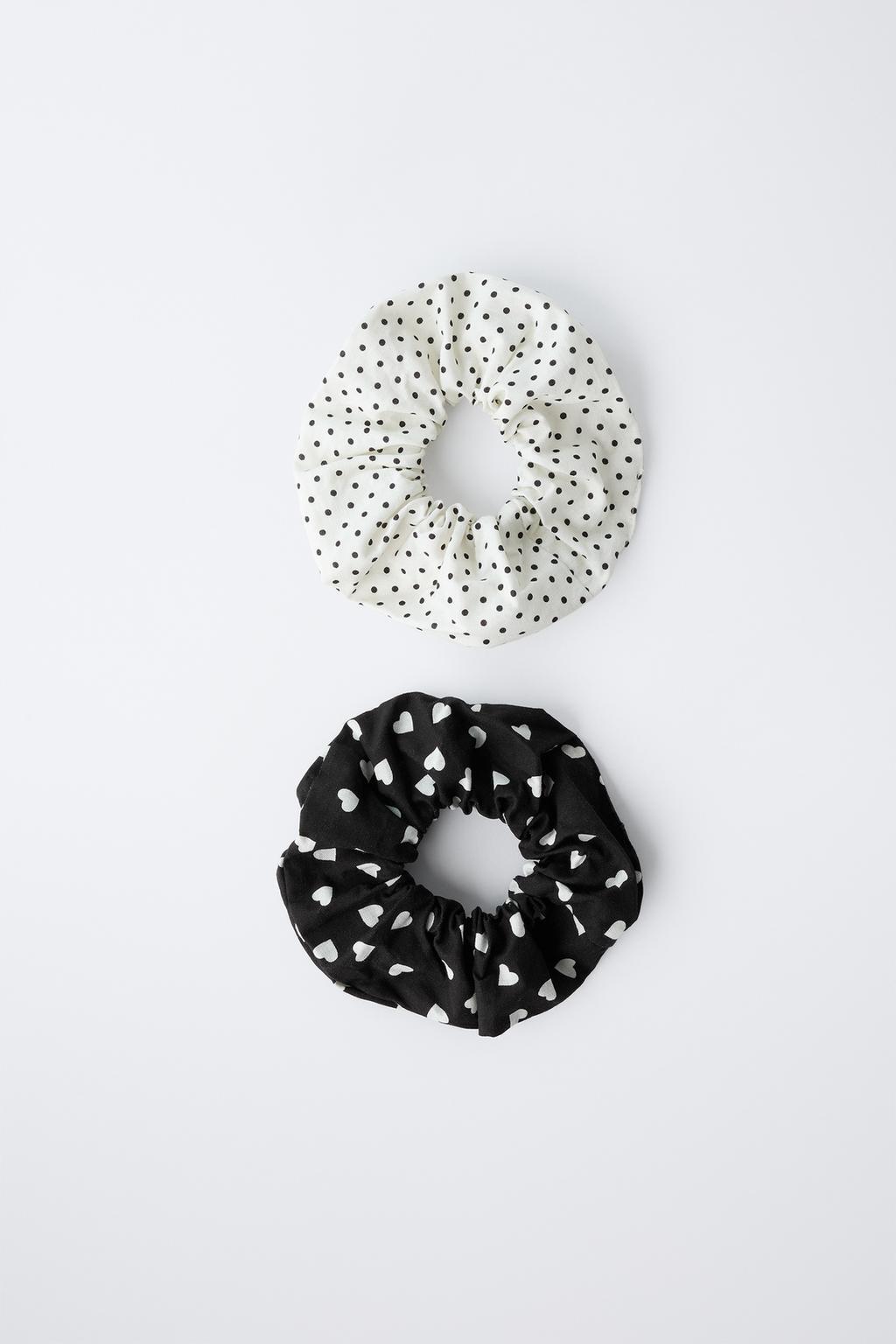 ZARA НАБОР ИЗ ДВУХ РЕЗИНОК ДЛЯ ВОЛОС В ГОРОШЕК И СЕРДЕЧКАМИ, БЕЛЫЙ/ЧЕРНЫЙ