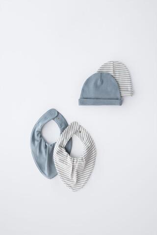 ZARA НАБОР ИЗ ДВУХ ШАПОК И ДВУХ НАГРУДНИКОВ, СИНИЙ