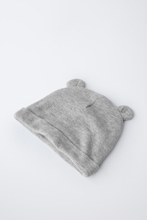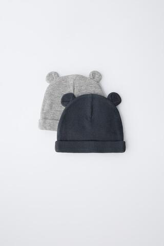 ZARA НАБОР ИЗ ДВУХ ШАПОК WAFFLE С УШКАМИ, СЕРЫЙ/СИНИЙ