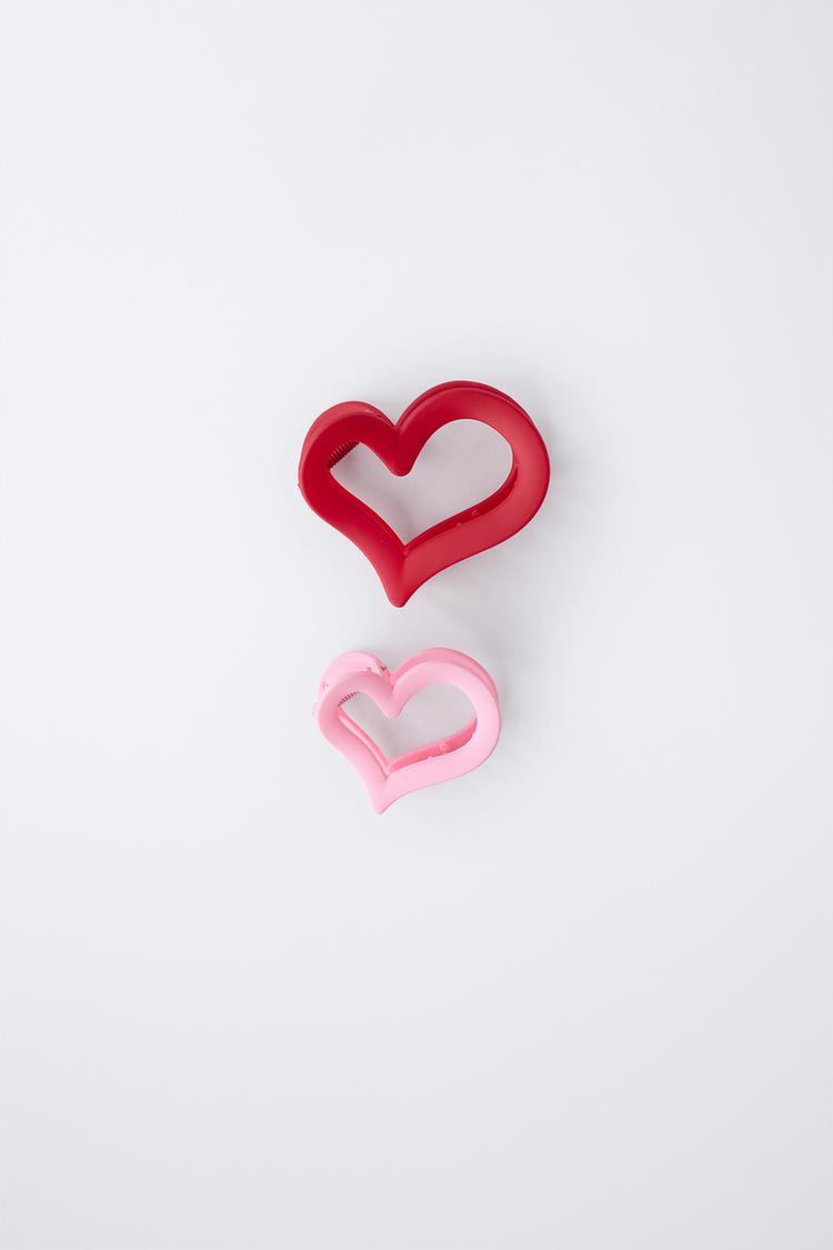 ZARA НАБОР ИЗ ДВУХ ЗАКОЛОК ДЛЯ ВОЛОС В ФОРМЕ СЕРДЦА, КРАСНЫЙ