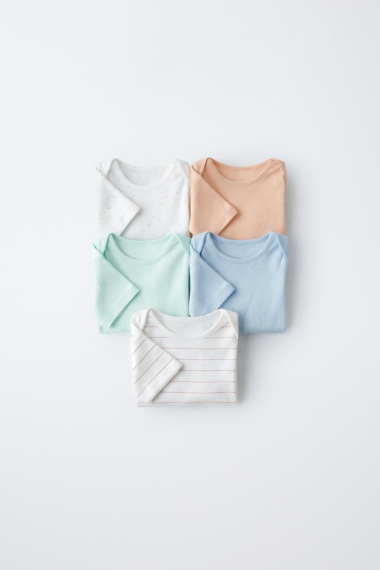 ZARA НАБОР ИЗ ПЯТИ БОДИ С КАПЛЯМИ И ПОЛОСКАМИ, РАЗНОЦВЕТНЫЙ