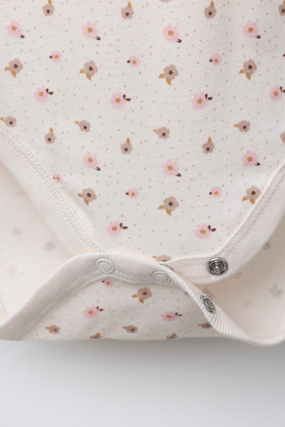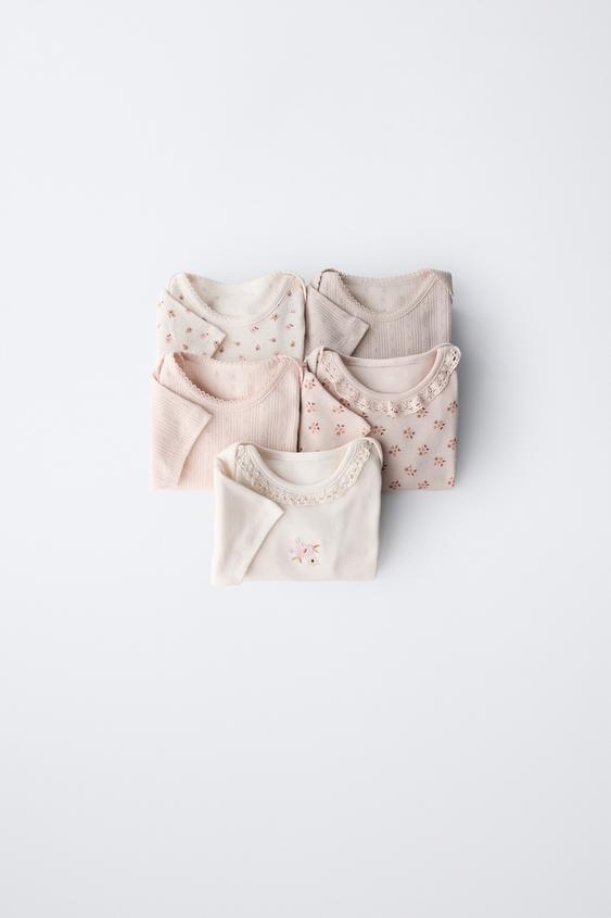 ZARA НАБОР ИЗ ПЯТИ БОДИ С ЦВЕТОЧНЫМ ПРИНТОМ, ПУДРОВО-РОЗОВЫЙ