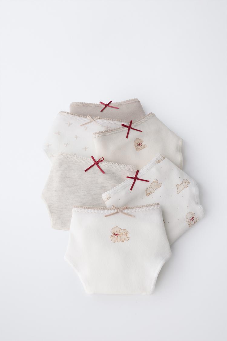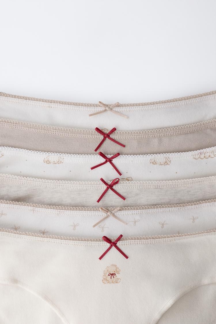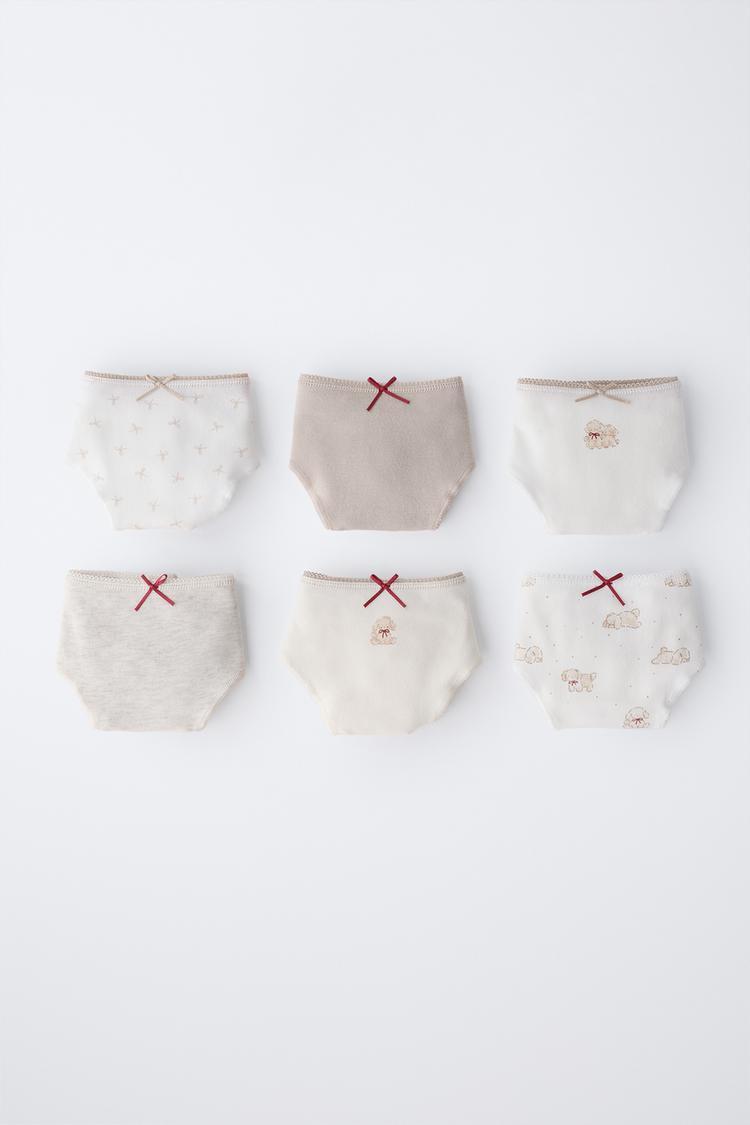 ZARA НАБОР ИЗ ШЕСТИ ТРУСОВ С ПРИНТОМ СОБАЧЕК, РЫЖЕВАТО-КОРИЧНЕВЫЙ