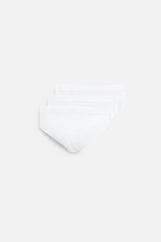 ZARA НАБОР ИЗ ТРЕХ БАЗОВЫХ ТРУСОВ, БЕЛЫЙ