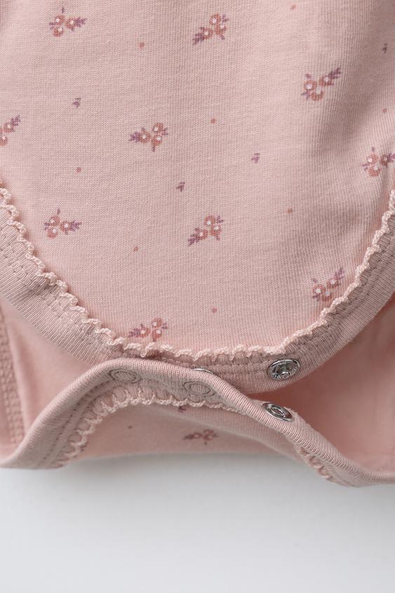 ZARA НАБОР ИЗ ТРЕХ БОДИ-КИМОНО С ЦВЕТОЧНЫМ ПРИНТОМ, РОЗОВЫЙ