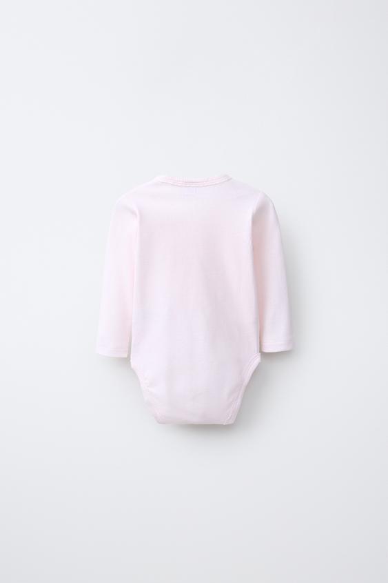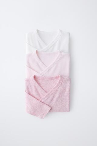 ZARA НАБОР ИЗ ТРЕХ БОДИ В РУБЧИК КИМОНО, РОЗОВЫЙ