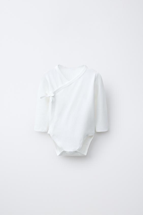 Набор из трех боди в рубчик с вырезом-кимоно и длинными рукавами. Запáх с кнопками спереди и снизу.