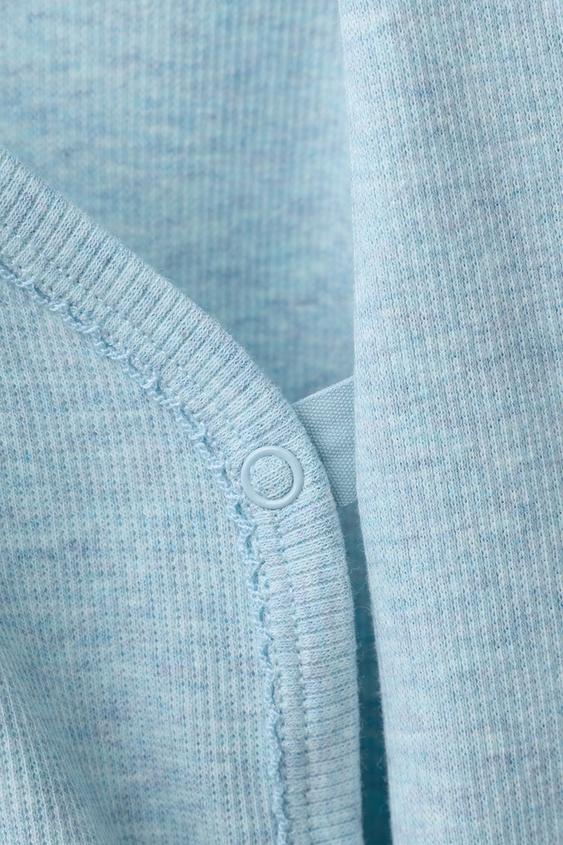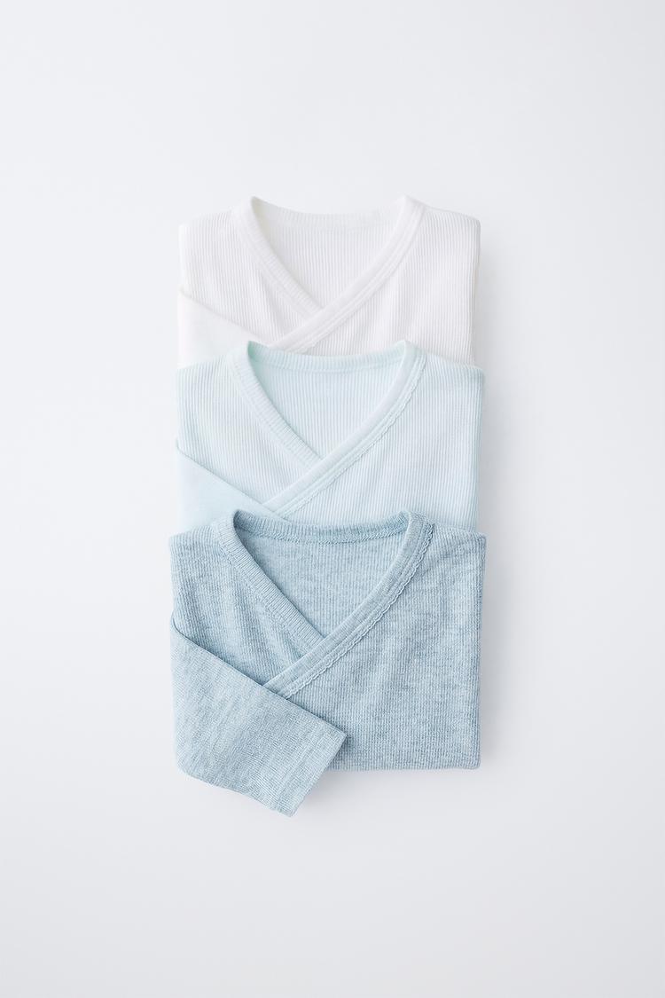 Набор из трех боди в рубчик с вырезом кимоно и длинными рукавами. Запáх с кнопками спереди и снизу.