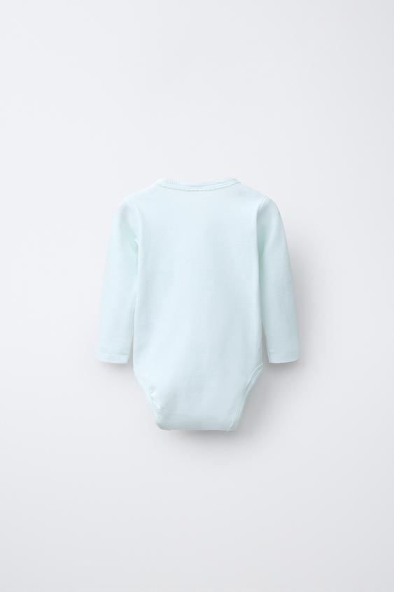 ZARA НАБОР ИЗ ТРЕХ БОДИ В РУБЧИК С ВЫРЕЗОМ КИМОНО, ЦВЕТ МОРСКОЙ ВОЛНЫ