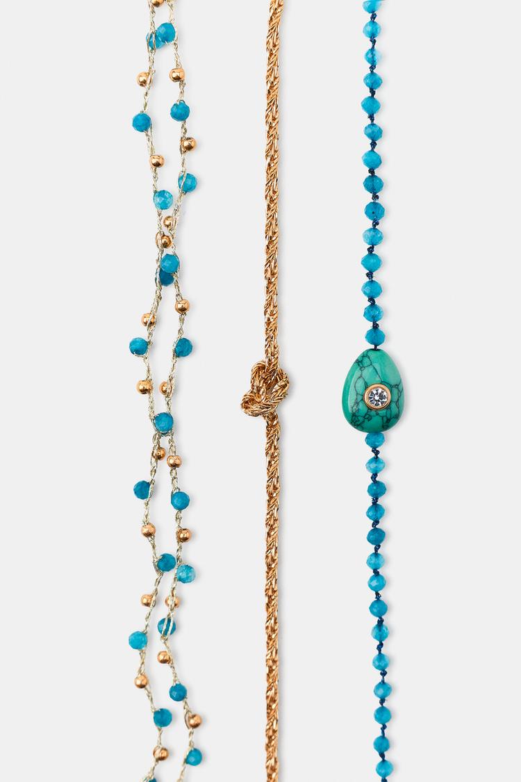 ZARA НАБОР ИЗ ТРЕХ БРАСЛЕТОВ НА ЩИКОЛОТКУ С БУСИНАМИ, БИРЮЗОВЫЙ
