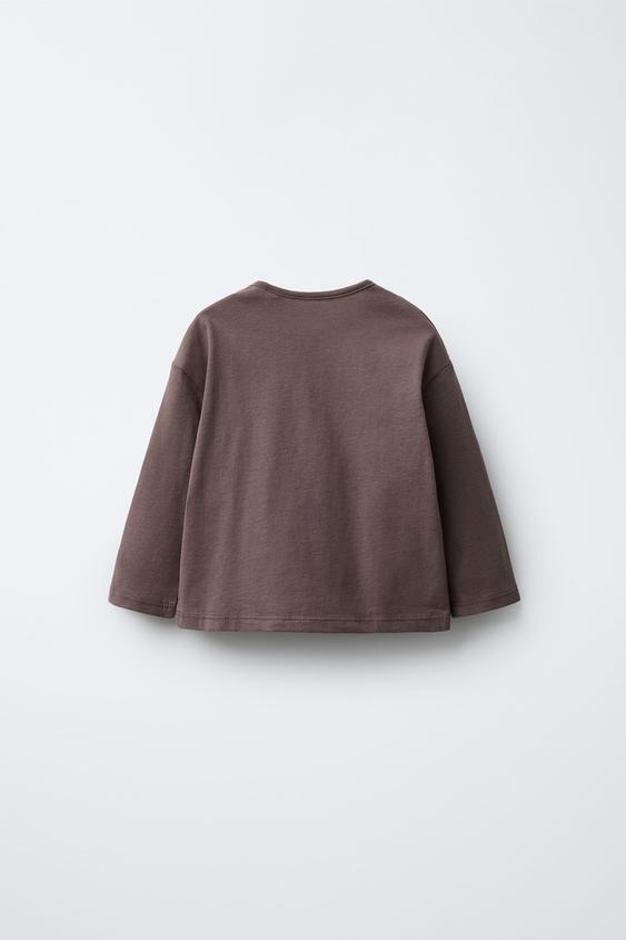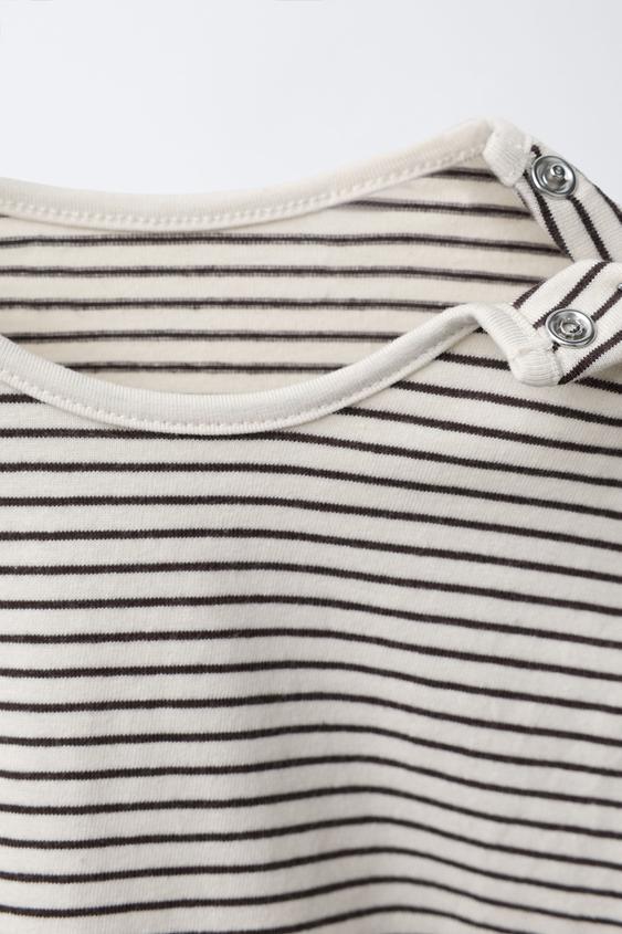 ZARA НАБОР ИЗ ТРЕХ ФУТБОЛОК: ОДНОТОННЫЕ И В ПОЛОСКУ, КОРИЧНЕВЫЙ