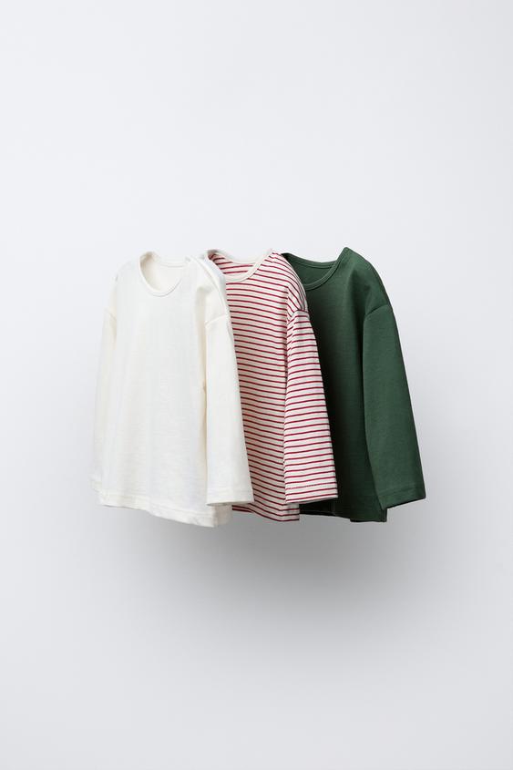 ZARA НАБОР ИЗ ТРЕХ ФУТБОЛОК: ОДНОТОННЫЕ И В ПОЛОСКУ, МЯГКИЙ ЗЕЛЕНЫЙ