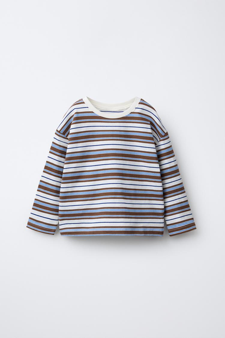 Набор из трех футболок с круглым вырезом и длинными рукавами.