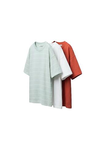 ZARA НАБОР ИЗ ТРЕХ ФУТБОЛОК В ПОЛОСКУ И ОДНОТОННЫХ, ТЕМНО-ОРАНЖЕВЫЙ