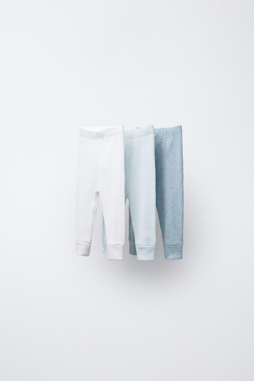 ZARA НАБОР ИЗ ТРЕХ ЛЕГГИНСОВ В РУБЧИК ЦВЕТ МОРСКОЙ ВОЛНЫ