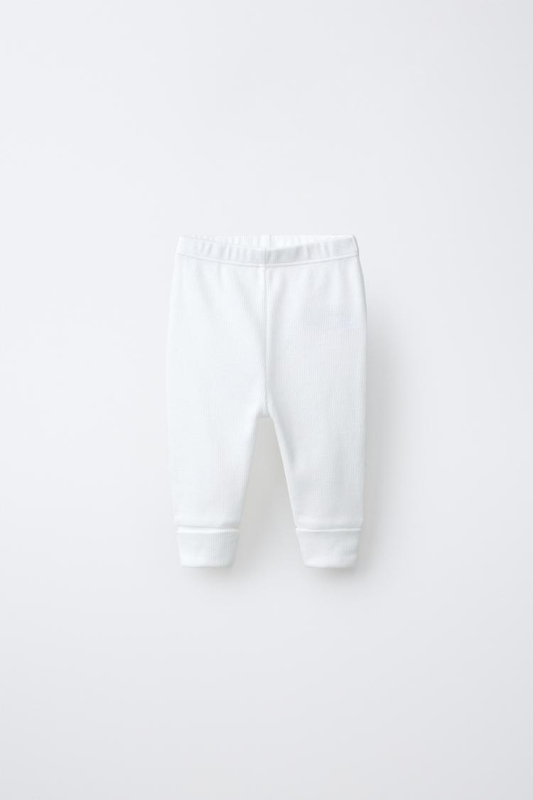 Набор из трех леггинсов в рубчик с регулируемым эластичным поясом и манжетами внизу.