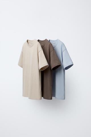 ZARA НАБОР ИЗ ТРЕХ ОДНОТОННЫХ ФУТБОЛОК, ПАСТЕЛЬНО-СИНИЙ