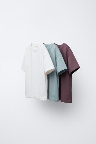 ZARA НАБОР ИЗ ТРЕХ ОДНОТОННЫХ ФУТБОЛОК, СВЕТЛО-КОРИЧНЕВЫЙ