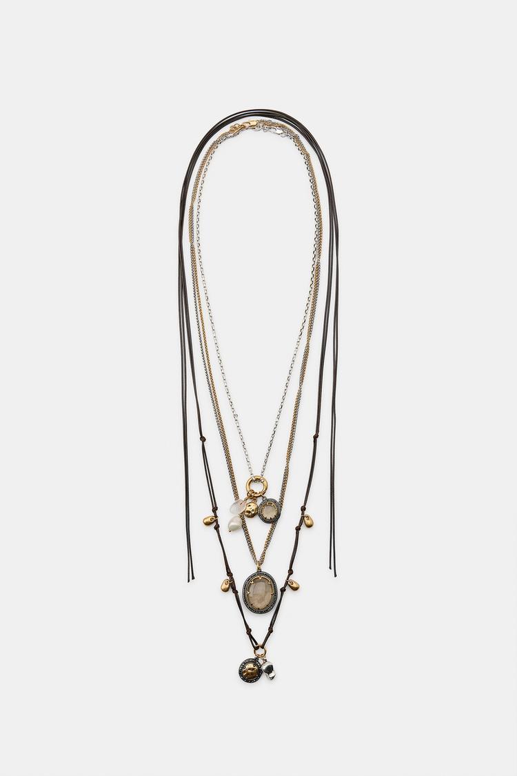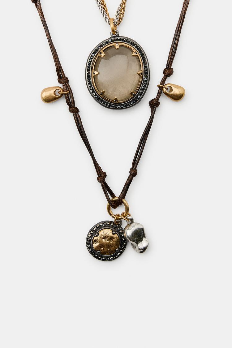 ZARA НАБОР ИЗ ТРЕХ ОЖЕРЕЛИЙ С КАМНЯМИ И ШАРМАМИ, ЗОЛОТОЙ/СЕРЕБРЯНЫЙ
