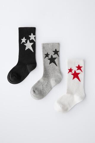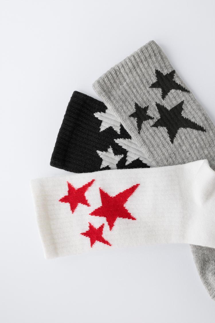 ZARA НАБОР ИЗ ТРЕХ ПАР НОСКОВ С ПРИНТОМ «ЗВЕЗДЫ», СЕРЫЙ