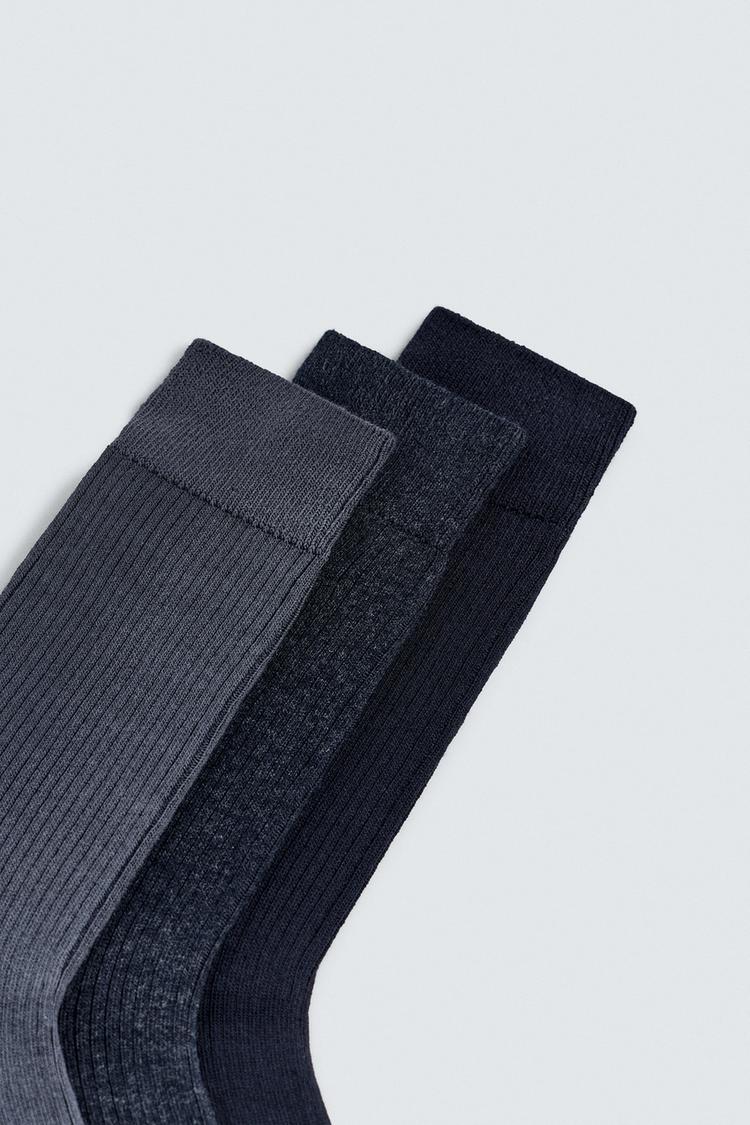 Набор из трех пар носков из эластичного трикотажа в рубчик с отделкой в рубчик.