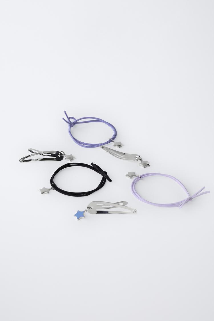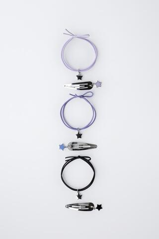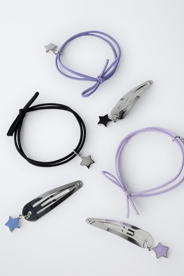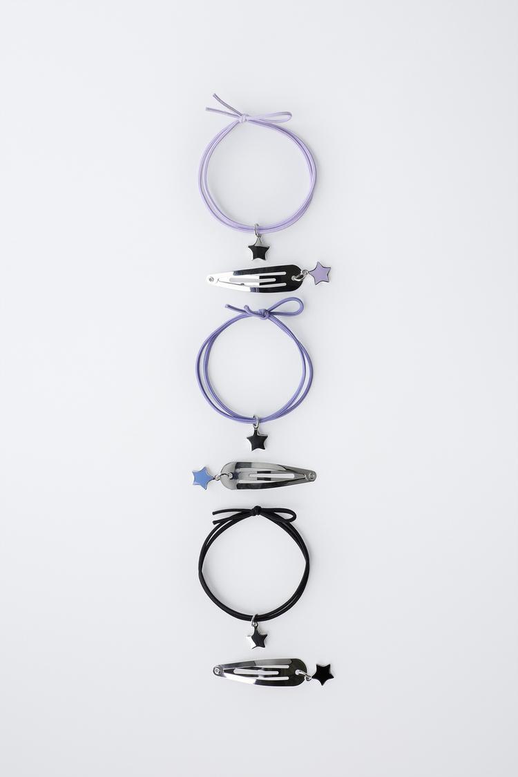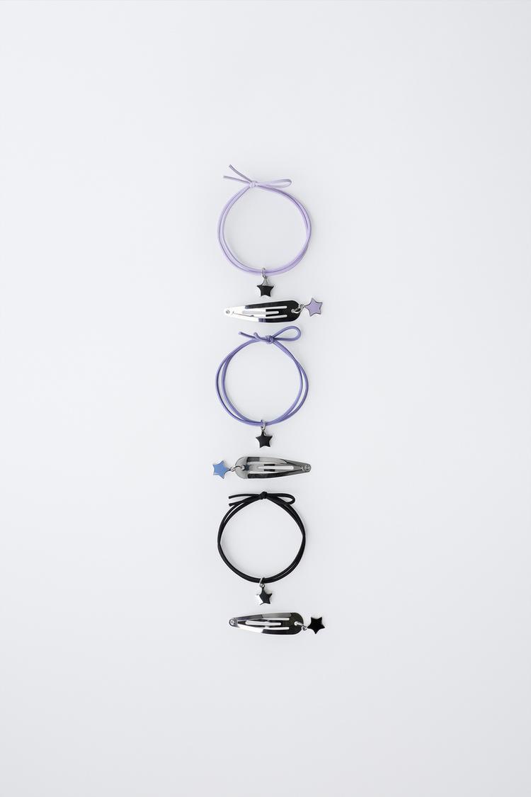 ZARA НАБОР ИЗ ТРЕХ РЕЗИНОК И ТРЕХ ЗАКОЛОК «ЗВЕЗДА», СИРЕНЕВЫЙ
