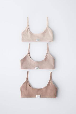 ZARA НАБОР ИЗ ТРЕХ ТОПОВ С НАШИВКОЙ, РЫЖЕВАТО-КОРИЧНЕВЫЙ