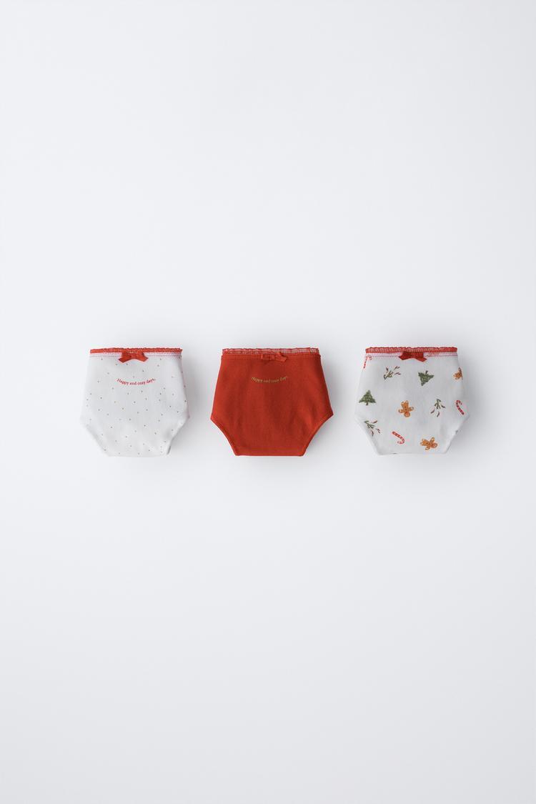 ZARA НАБОР ИЗ ТРЕХ ТРУСОВ С ПРИНТОМ, ЭКРЮ/КРАСНЫЙ
