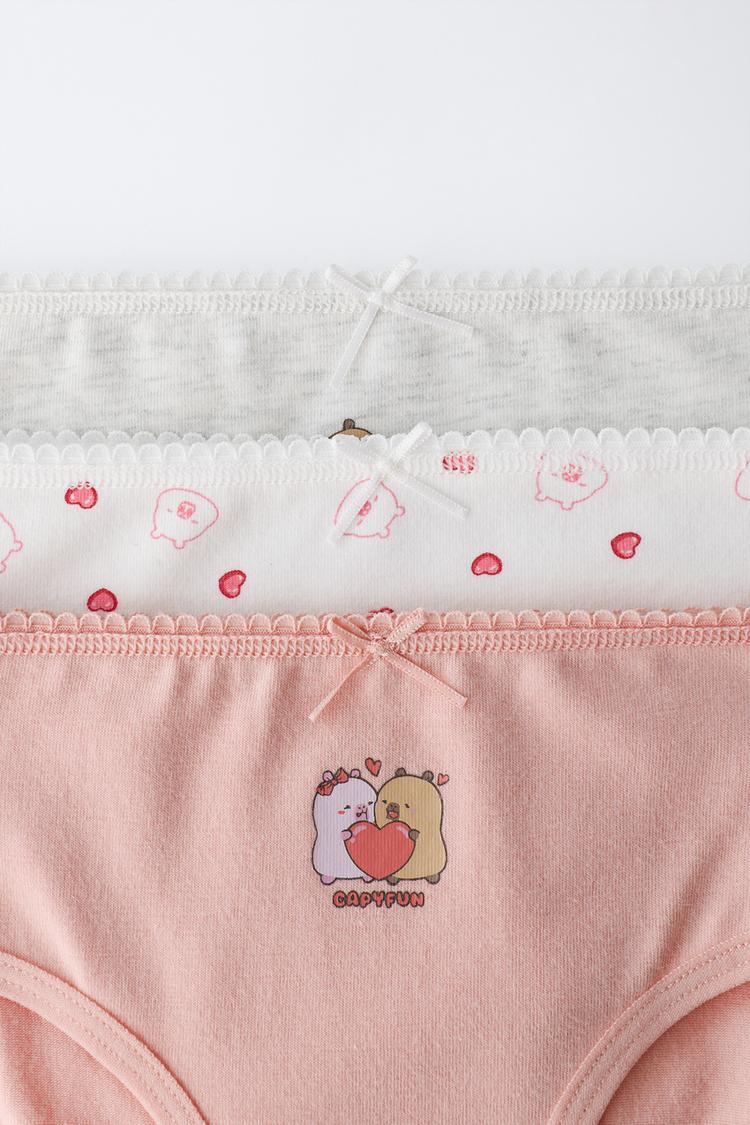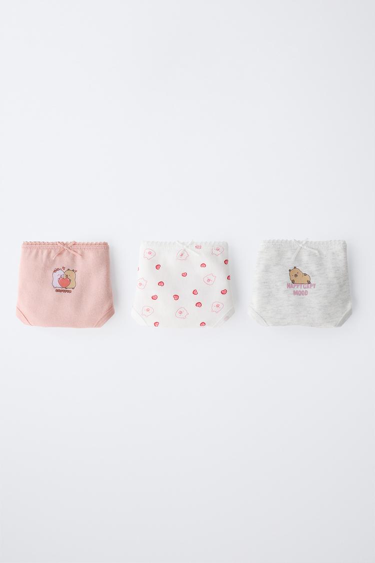 ZARA НАБОР ИЗ ТРЕХ ТРУСОВ С ПРИНТОМ, РОЗОВЫЙ