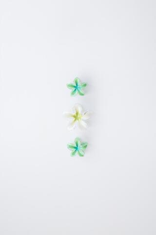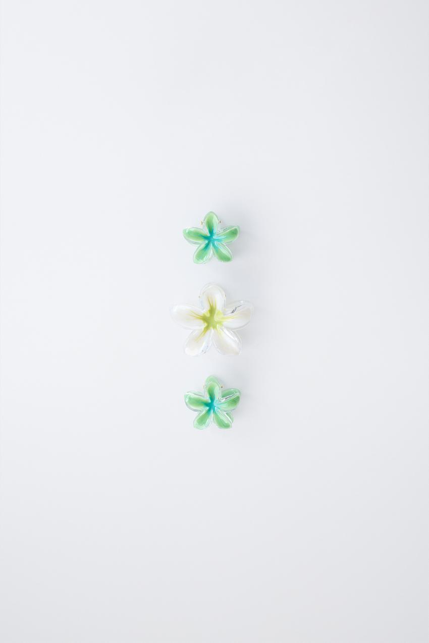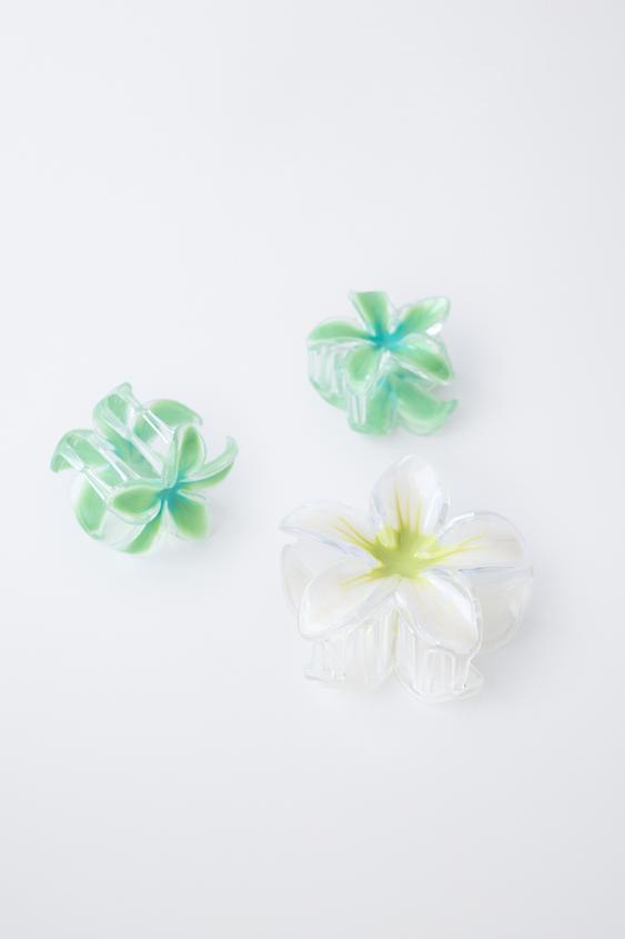 ZARA НАБОР ИЗ ТРЕХ ЗАКОЛОК «ГИБИСКУС», ЗЕЛЕНЫЙ