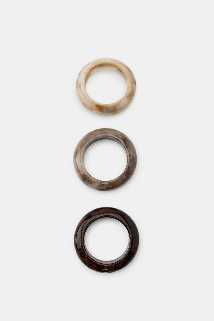 ZARA НАБОР ИЗ ТРЕХ ЖЕСТКИХ БРАСЛЕТОВ ИЗ СМОЛЫ, КОРИЧНЕВЫЙ