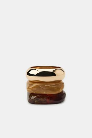 ZARA НАБОР ИЗ ТРЕХ ЖЕСТКИХ БРАСЛЕТОВ, КОРИЧНЕВЫЙ