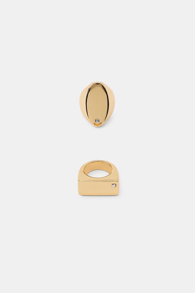 ZARA НАБОР КОЛЕЦ С ПЕЧАТКОЙ И КАМНЯМИ, ЗОЛОТИСТЫЙ