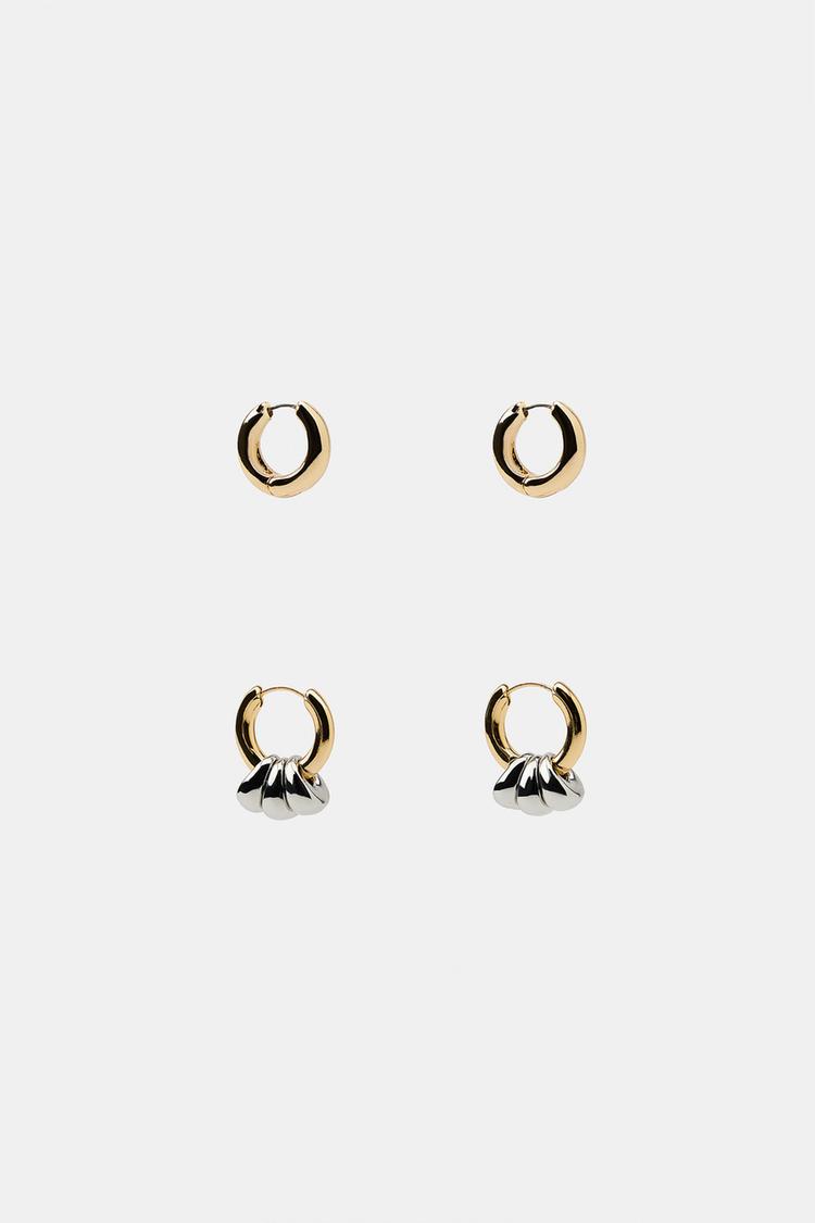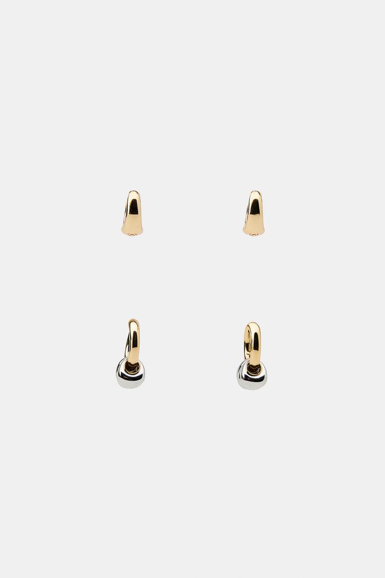 ZARA НАБОР КОМБИНИРОВАННЫХ СЕРЕГ-КОЛЕЦ, ЗОЛОТОЙ/СЕРЕБРЯНЫЙ