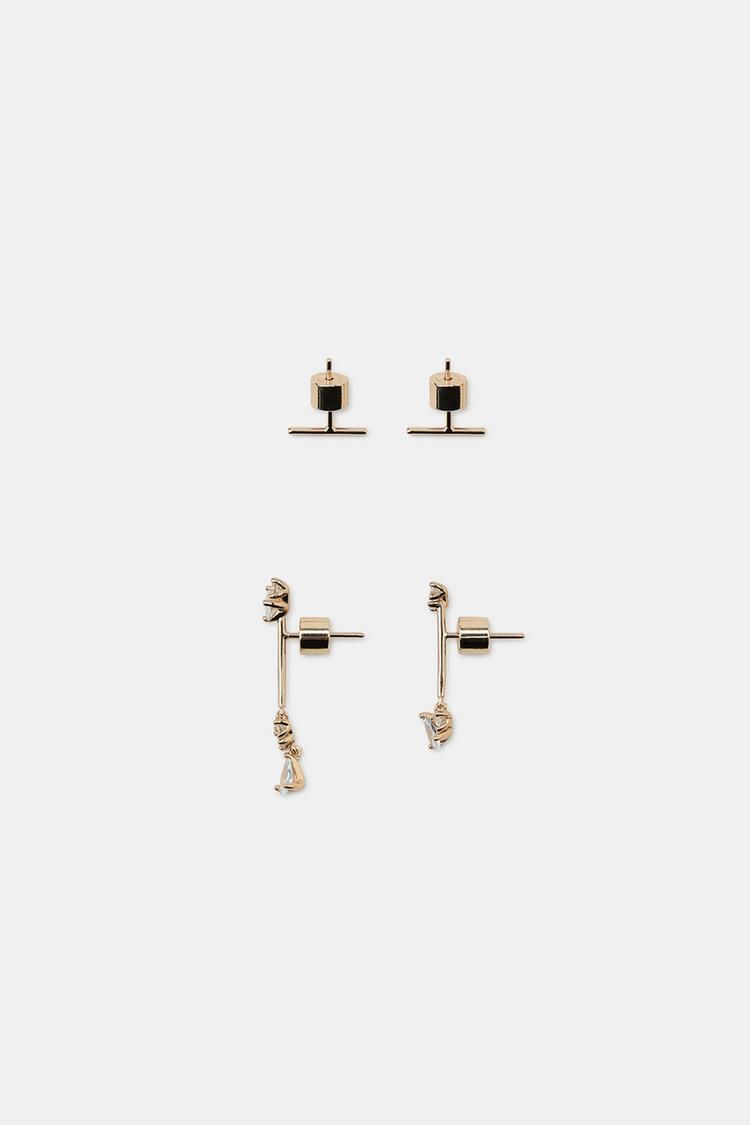 ZARA НАБОР МИНИМАЛИСТИЧНЫХ СЕРЕГ СО СТРАЗАМИ, ЗОЛОТИСТЫЙ