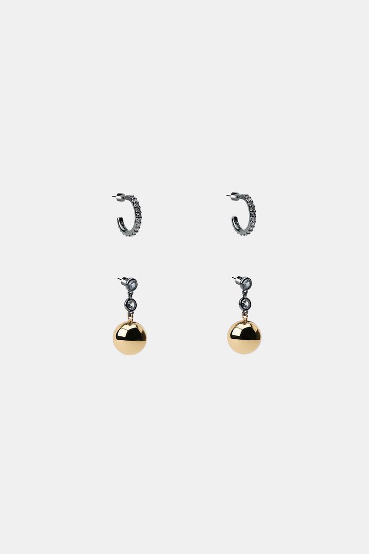 ZARA НАБОР СЕРЕГ СО СТРАЗАМИ И ШАРИКАМИ, ЗОЛОТИСТЫЙ