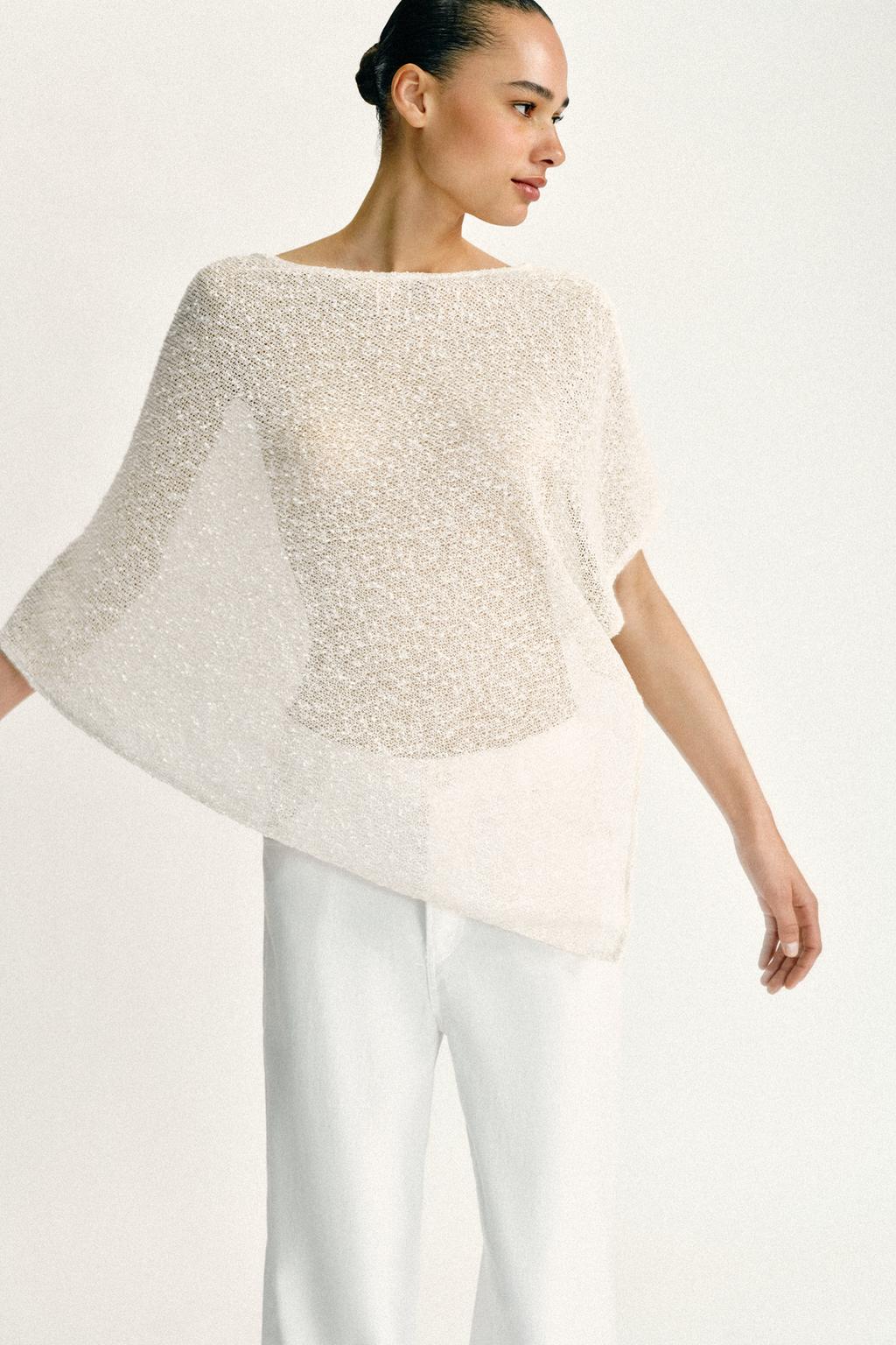 ZARA НАКИДКА АСИММЕТРИЧНОГО КРОЯ С БЛЕСТЯЩЕЙ НИТЬЮ, ЭКРЮ