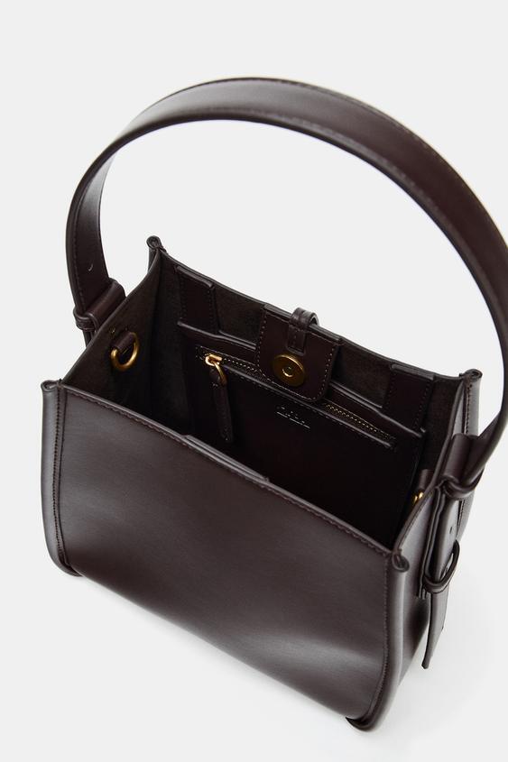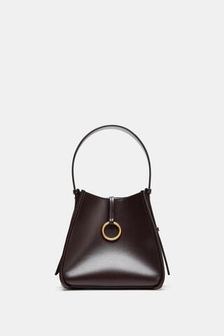 ZARA НЕБОЛЬШАЯ СУМКА-МЕШОК С МЕТАЛЛИЧЕСКИМ КОЛЬЦОМ, БОРДОВО-КРАСНЫЙ