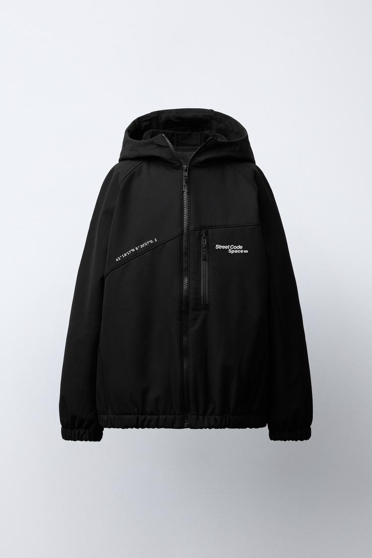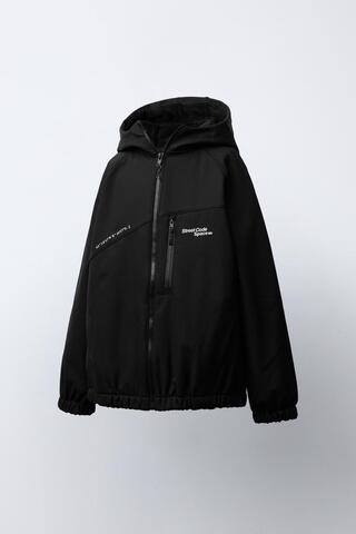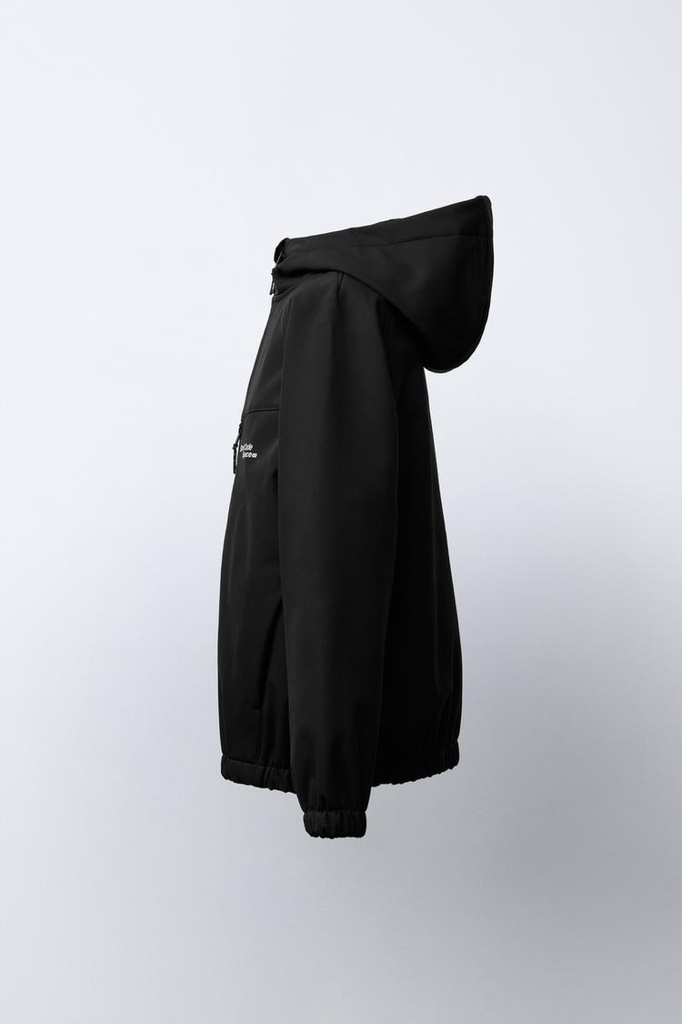ZARA НЕПРОМОКАЕМАЯ КУРТКА С КАПЮШОНОМ, ЧЕРНЫЙ
