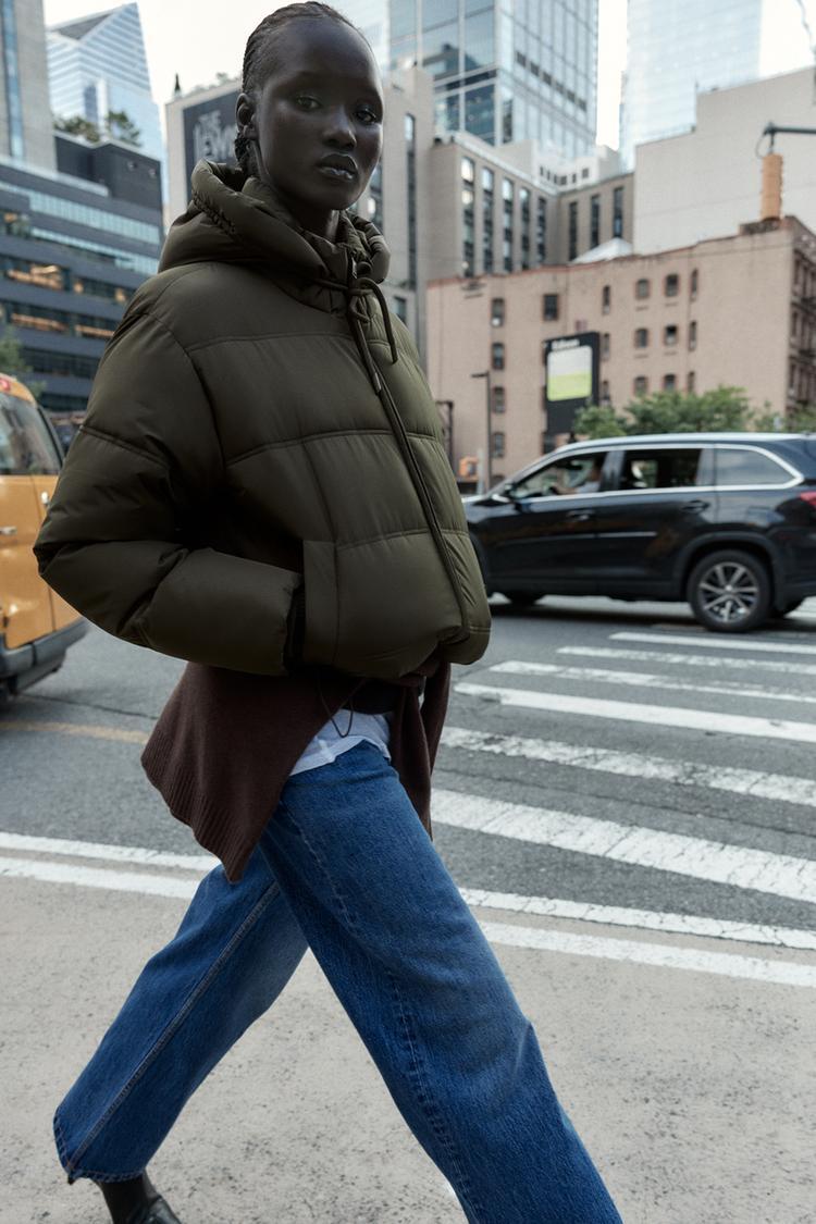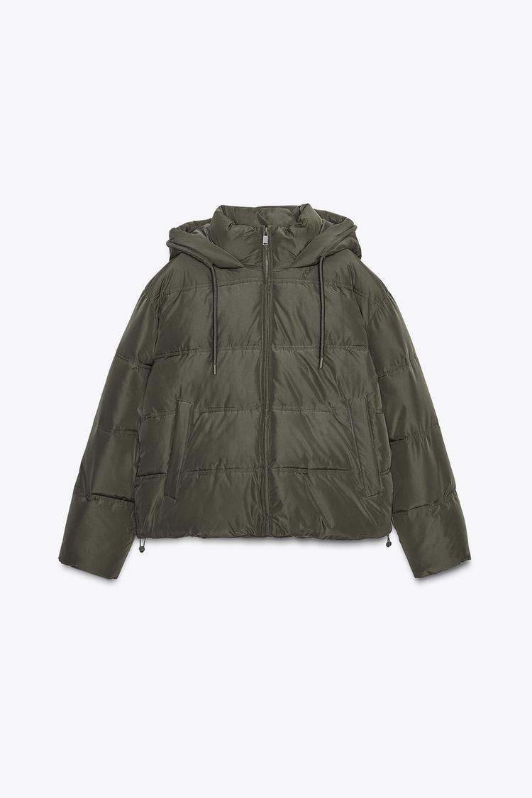 ZARA НЕПРОМОКАЕМЫЙ ВЕТРОЗАЩИТНЫЙ КОРОТКИЙ АНОРАК, ХАКИ