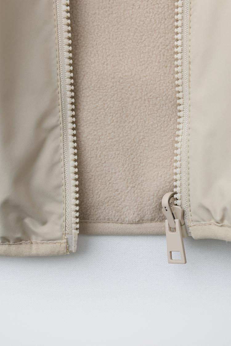 ZARA НЕЙЛОНОВАЯ КУРТКА ИЗ ПОЛАРФЛИСА, ЭКРЮ