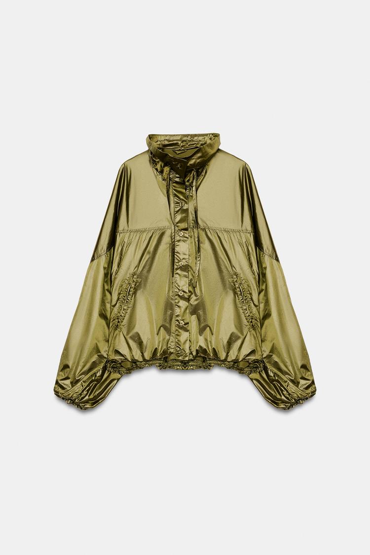 ZARA НЕЙЛОНОВАЯ КУРТКА ОВЕРСАЙЗ, НАСЫЩЕННЫЙ ЗЕЛЕНЫЙ