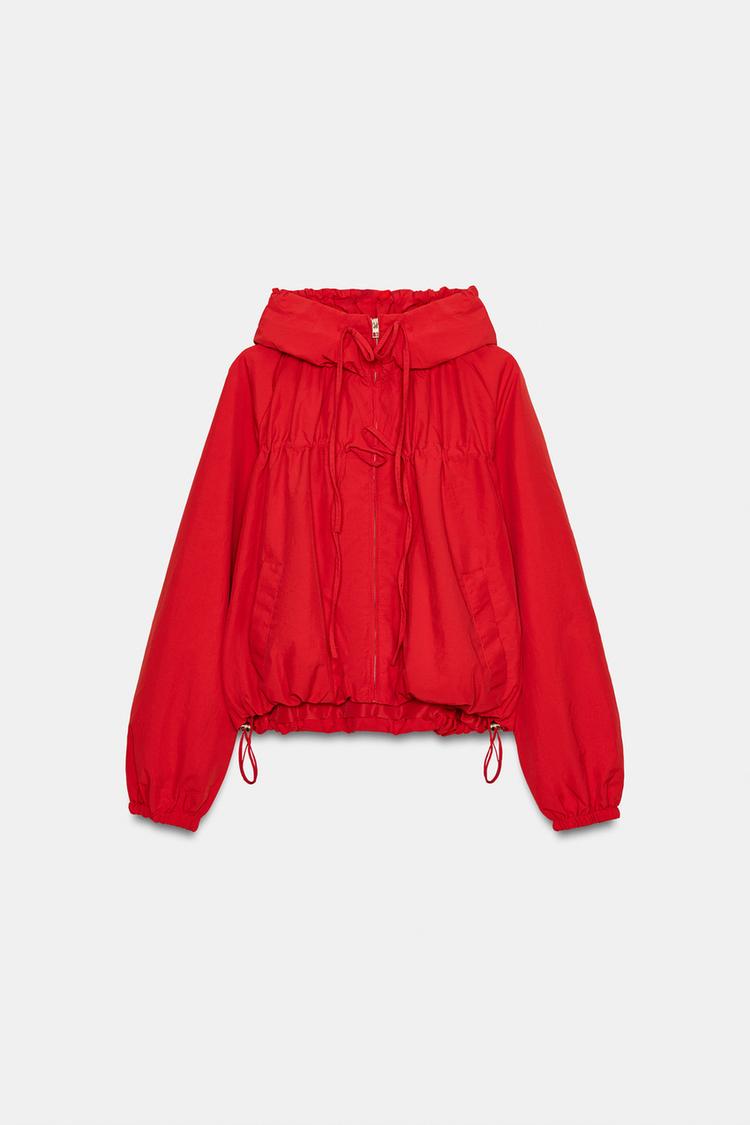 ZARA НЕЙЛОНОВАЯ КУРТКА С ЗАВЯЗКАМИ, КРАСНЫЙ