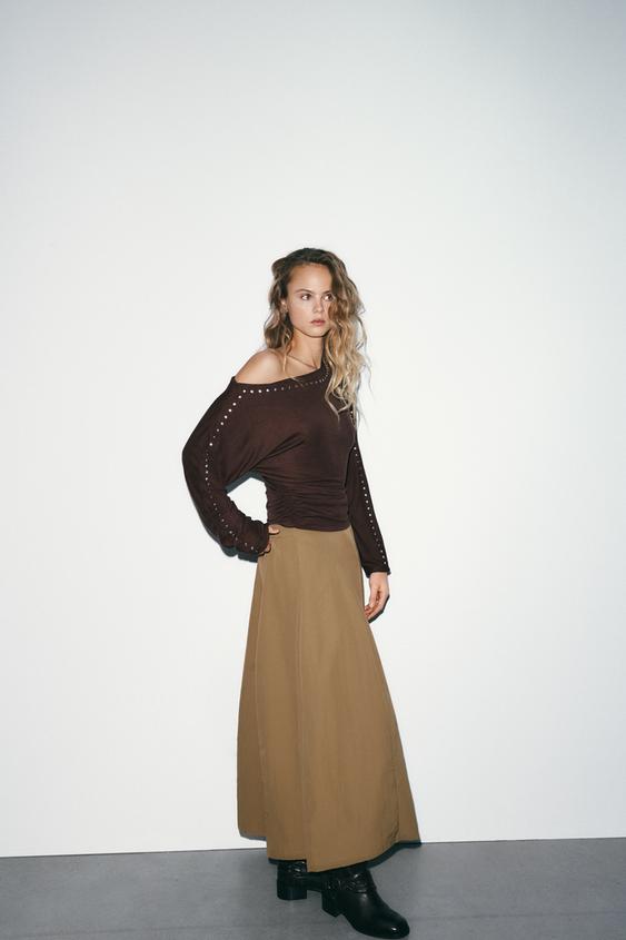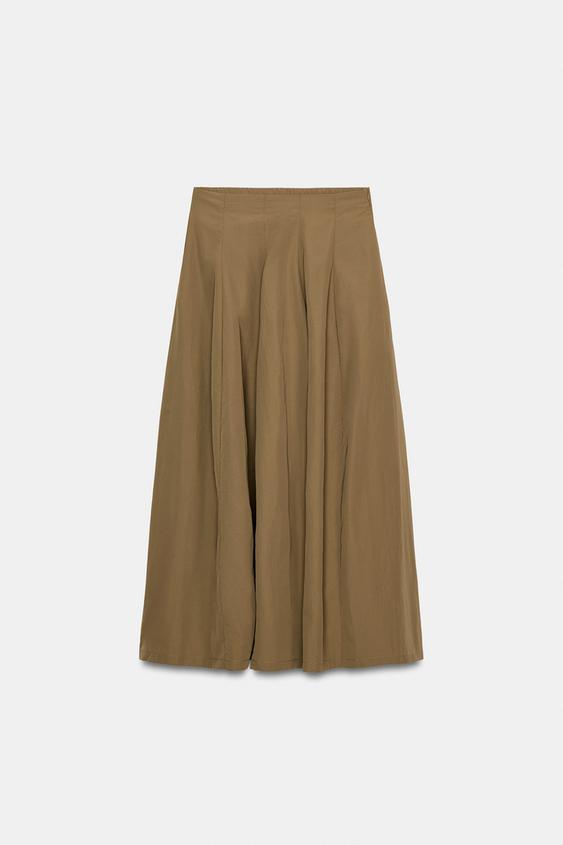 ZARA НЕЙЛОНОВАЯ ЮБКА МИДИ, ТЕМНО-БЕЖЕВЫЙ
