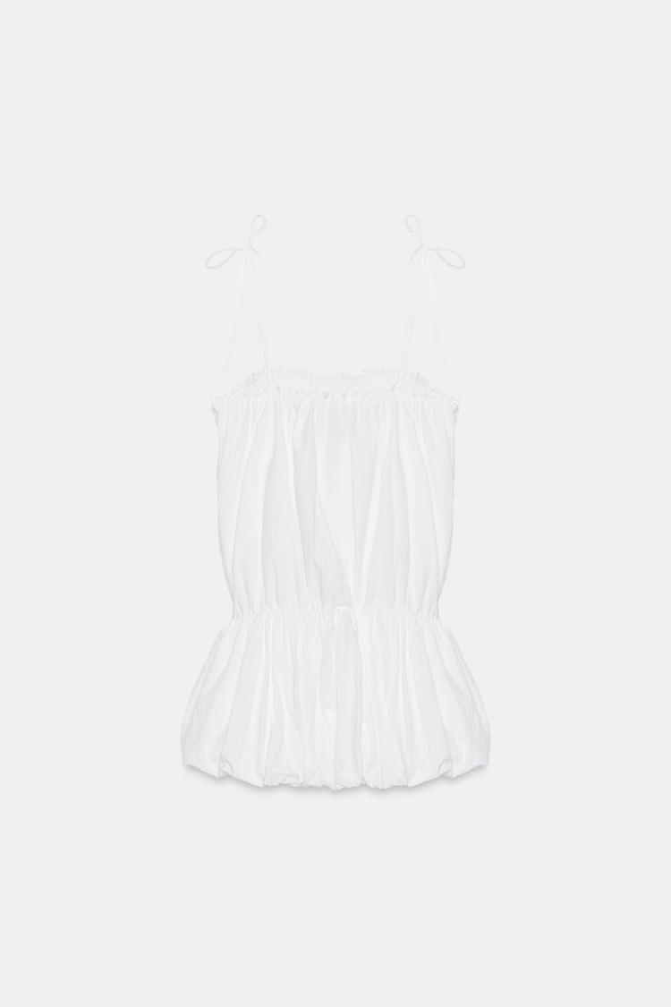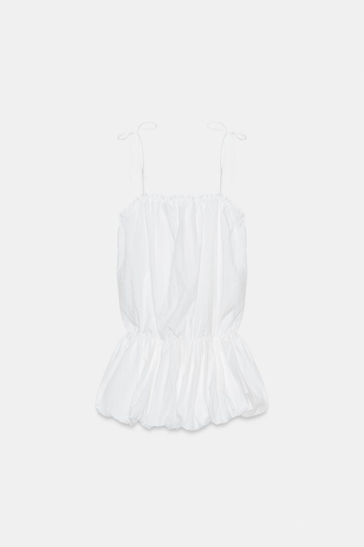 ZARA НЕЙЛОНОВОЕ ПЛАТЬЕ-БАЛЛОН, БЕЛЫЙ