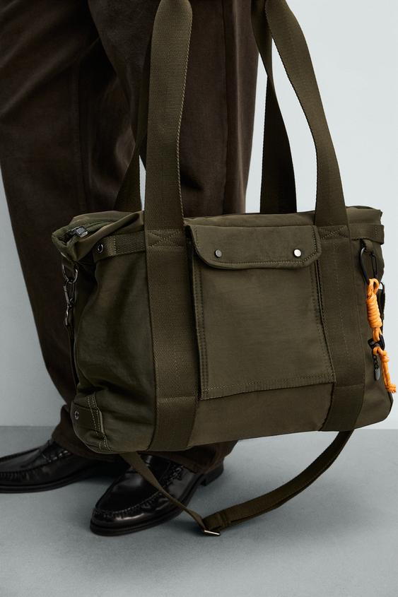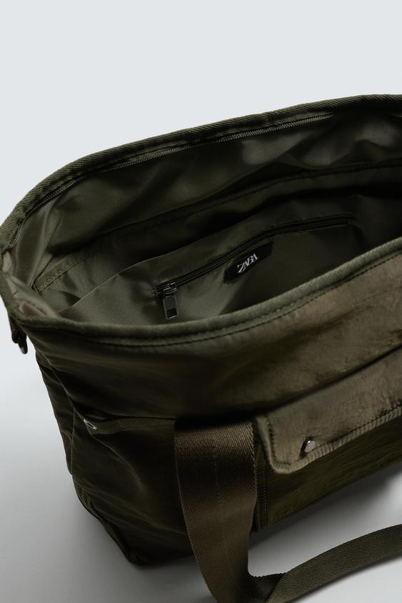 ZARA НЕЙЛОНОВЫЙ ШОПЕР, ЗЕЛЕНЫЙ ХАКИ