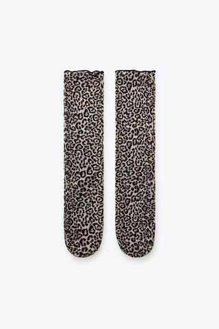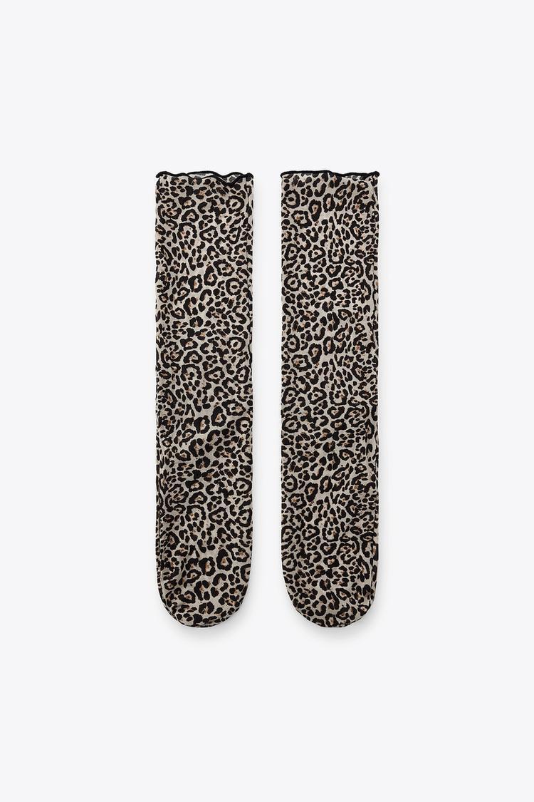 ZARA НОСКИ ДО СЕРЕДИНЫ ИКР С АНИМАЛИСТИЧЕСКИМ ПРИНТОМ, ЛЕОПАРДОВЫЙ
